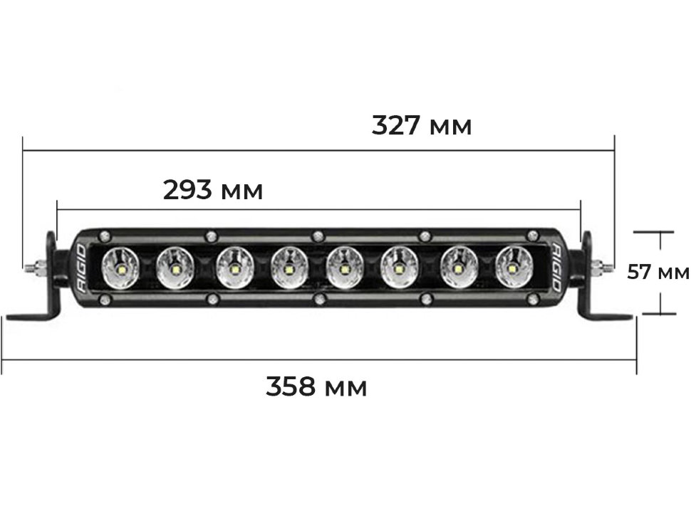 В RIGID Radiance используются диоды Osram Oslan Square. Их отличительная особенность – сохранение высокого уровня светоотдачи при повышении температуры кристалла. В 10-дюймовой фаре используется 8 светодиодов общей мощностью 43 Вт.