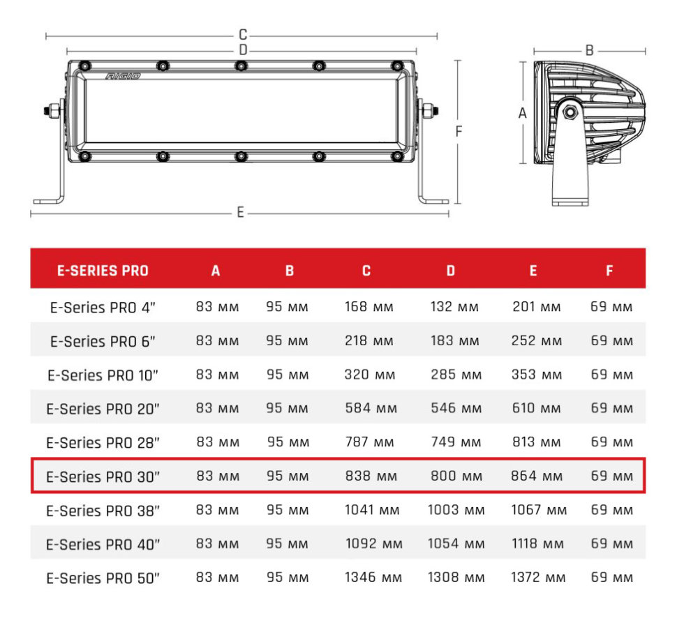 Светодиодная оптика RIGID E-серия 30″ PRO (Professional Race Output) – продвинутая модификация для использования на гражданской технике и в профессиональном авто- и мотоспорте!