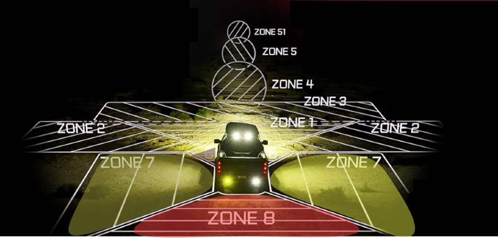 Диапазон света: Driving, ширина пучка - 90°, высота - 53°