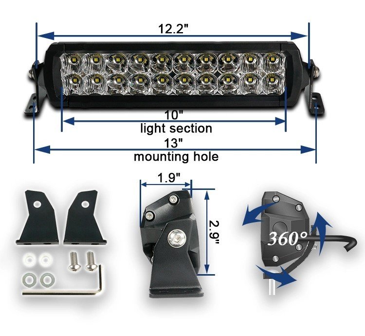 Двухрядная светодиодная балка Aurora ALO-D6D1-10 с типом света Combination в корпусе из ударопрочного алюминиевого сплава AA6063 с теплопроводностью 201 Вт/(м*К) оснащенного сапуном от запотевания и линзой из износостойкого поликарбоната Lexan - отличный вариант дополнительного света на ATV и UTV.