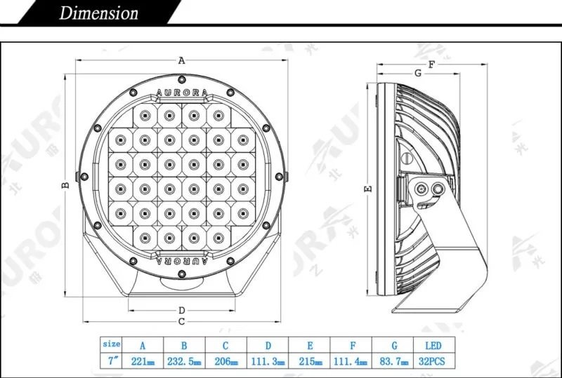 Светодиодная фара Aurora ALO-DR7 предназначена для установки в качестве источника дополнительного комбинированного света на автомобили, багги, и маломерные суда. В качестве источника света используются 36 светодиодов, производства OSRAM. Фара дает ровный яркий свет без пятен пересвета или теней.