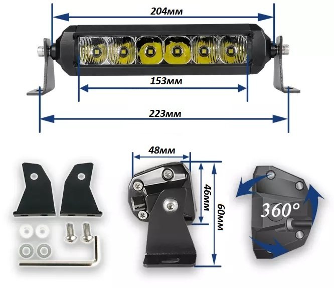 Благодаря прямоугольной форме и небольшим размерам светодиодная балка Aurora (Аврора) ALO-S5-6 отлично подходит как дополнительный свет на внедорожник, квадроцикл, багги и специальную технику.