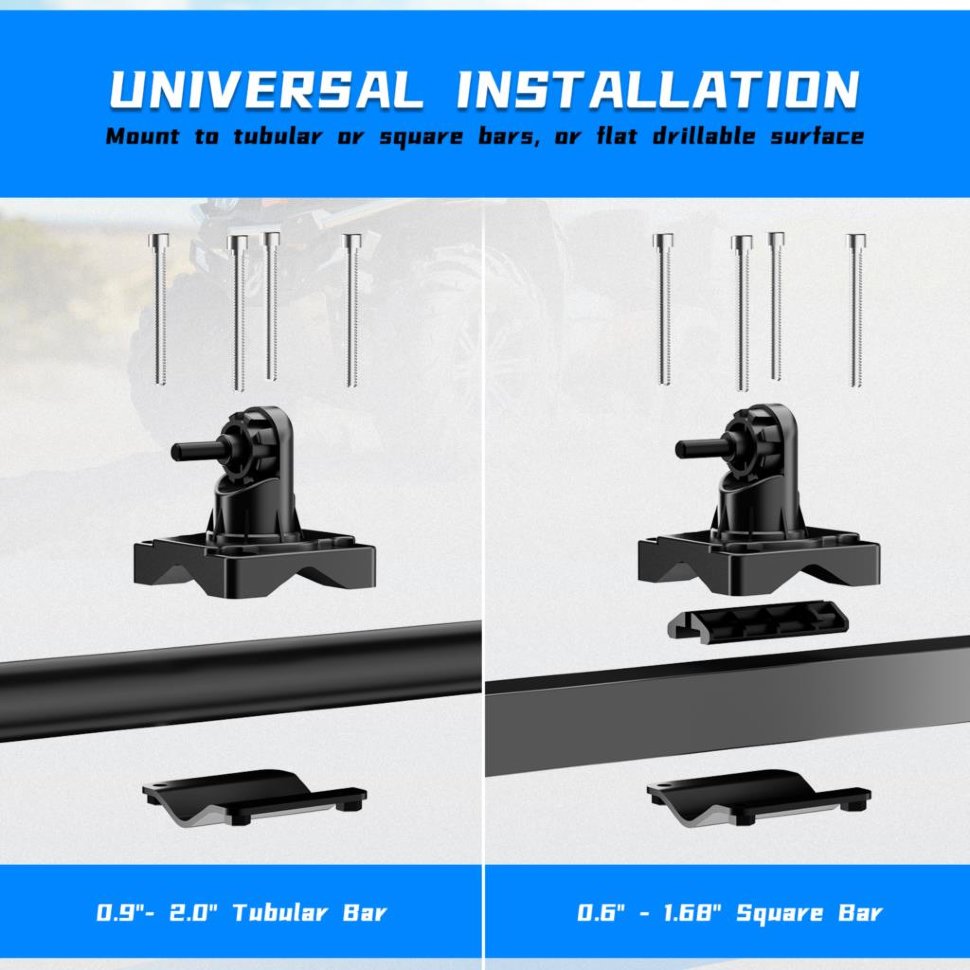 Этот продукт подходит для установки на квадроциклах, UTVs и других моделях с квадратными и круглыми трубами.