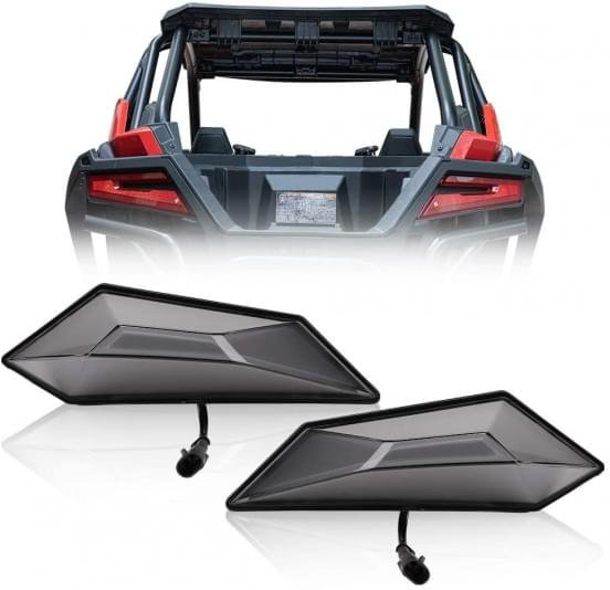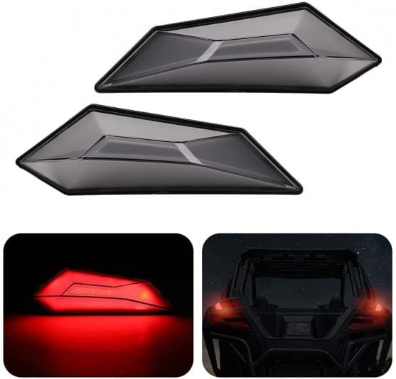 【Уникальный дизайн】 -В отличие от модели верхнего заднего фонаря красного цвета OEM, мы используем популярный холодный черный цвет в качестве цвета светодиодных габаритных огней. Но когда горит задний фонарь, верхний тормозной свет излучает красный свет, соответствующий вашему корпусу RZR.