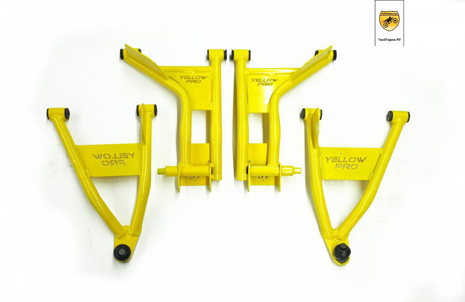 Теперь Ваш STELS GUEPARD может получить максимальный клиренс без лифт-комплекта за счет прекрасного конструкторского решения: изгиба нижних рычагов. Рычаги Yellow Pro обеспечивают дополнительный дорожный просвет там, где это наиболее необходимо. Данный комплект рычагов разработан специально для владельцев STELS GUEPARD, которые беспокоятся о дополнительном износе узлов и агрегатов своего квадроцикла, связанных с установкой лифт-комплекта. После установки рычагов Yellow Pro, углы работы шрусов остаются в заводском исполнении и не возникает никакого дополнительного износа.