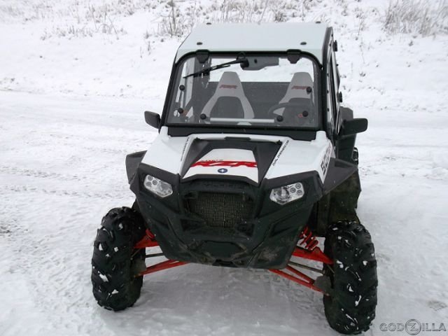 Передняя панель оснащается омывателем и стеклоочистителем. Имеет возможность открытия под углом, в целях вентиляции, а также целиком (во время охоты);