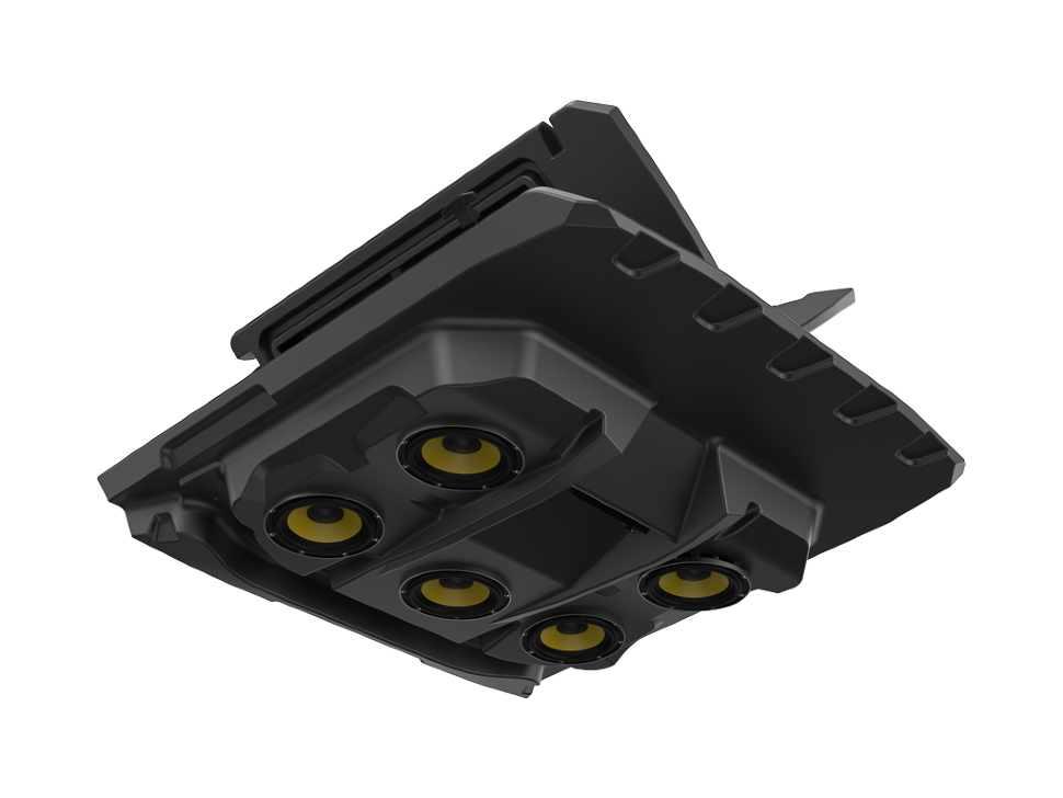 Внизу крыши есть специальные углубления, позволяющие установить стереосистему из 5 динамиков.