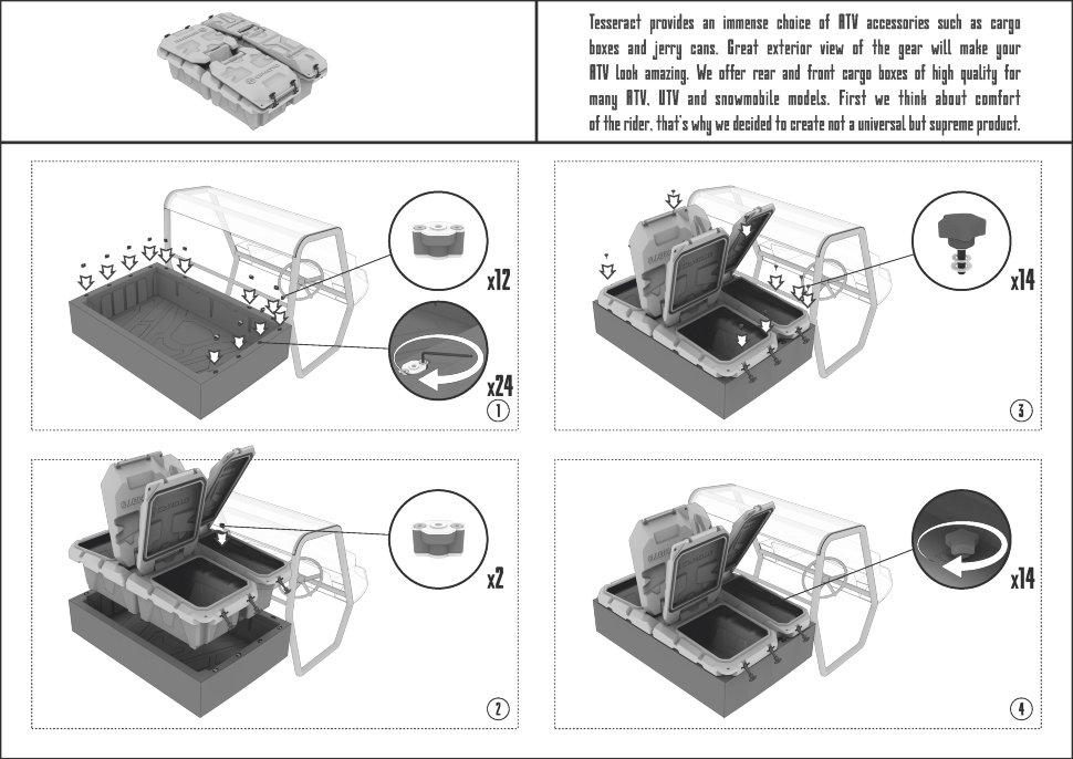 Набор для крепежа, входящий в комплект, позволяет легко и быстро установить или изменить компоновку кофров в кузове без использования специальных инструментов.