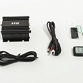 Усилитель воспроизводит музыкальные файлы с телефона или MP3-плеера по Bluetooth или через разъем MiniJack (3.5 мм). Максимальная мощность 2Х25Вт (4 Ом). Интерфейсы: Bluetooth, 1xAUX IN, 1xAudio out (для подключения динамиков).