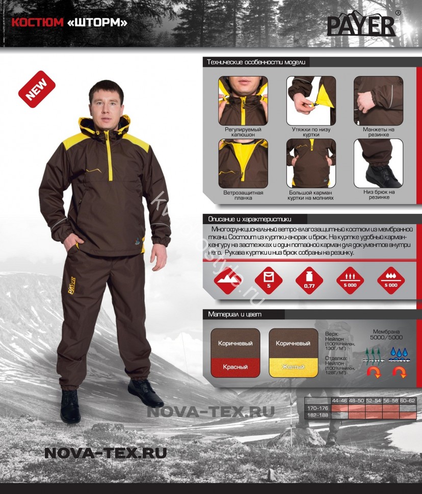 Костюм мембранный «шторм» (ткань: нейлон, цвет: коричнево-красный) payer