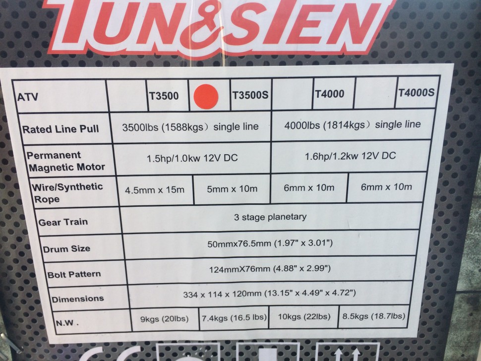 Лебедка для квадроцикла TUNGSTEN X3500s с тяговым усилием 3500 lbs или 1588 кг