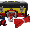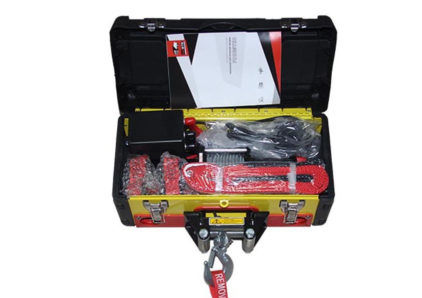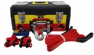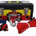 Комплектация: кейс, лебедка 3500 lbs, 2 шакла, стропа, провода, перчатки, пульты проводной и дистанционный