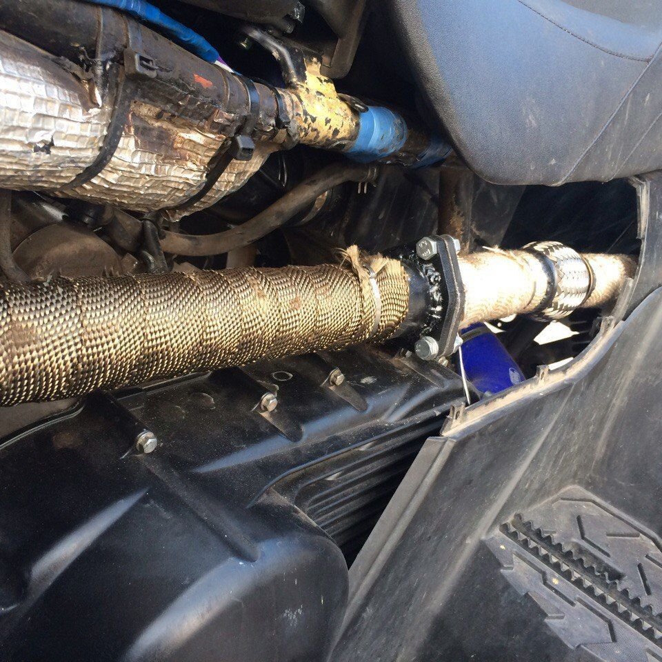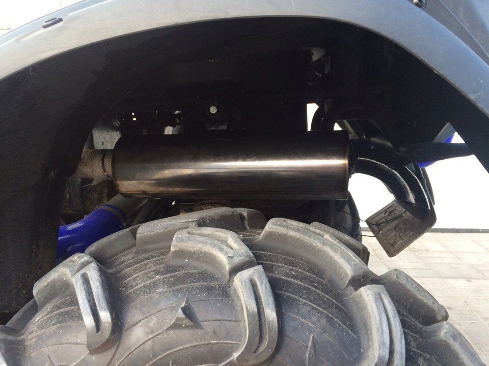 Разработанный нами выпускной тракт, специально сконструирован для увеличения мощности по всем рабочем диапазоне, дает хороший подхват и динамику относительно стандартного выхлопного тракта, так же решена проблема с подвижным соединением, оно заменено на флянцевое с подвижной гофрой. Весь тракт проходит теплоизоляцию термолентой Buddyclub 1300 или Super Termo которая снижает температуру трассы до приемлемой и делает передвижение на квадроцикле более комфортное.