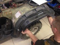 Расширители арок выполнены из гибкого, морозостойкого, устойчивого к ударам пластика. Крепятся на клипсы, сверление по месту, идеально повторяют арку квадроцикла.