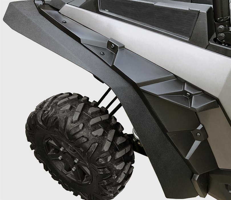 Расширители колесных арок изготовленные специально для Polaris RZR1000 предоставляют дополнительную защиту от камней и грязи летящих из под колес. Теперь Вы сможете установить широкие колеса!