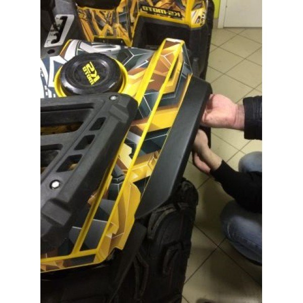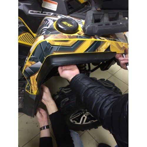 Расширители арок выполнены из гибкого, морозостойкого, устойчивого к ударам пластика. Крепятся на клипсы, сверление по месту, идеально повторяют арку квадроцикла.