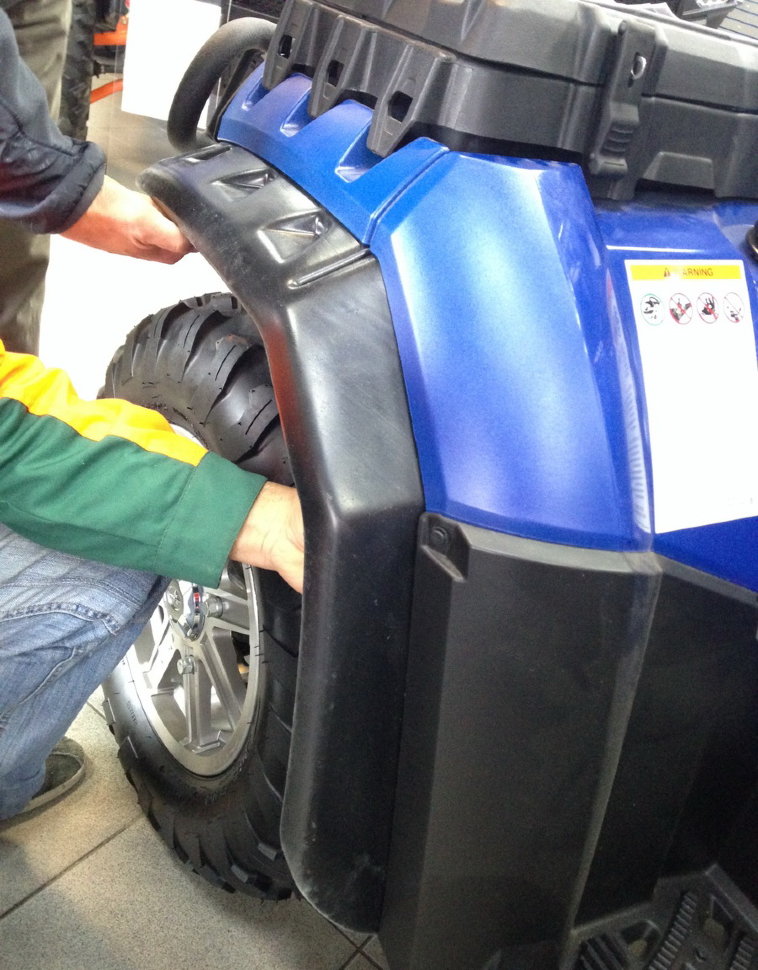 Расширители арок выполнены из гибкого, морозостойкого, устойчивого к ударам пластика. Крепятся на клипсы, сверление по месту, идеально повторяют арку квадроцикла.
