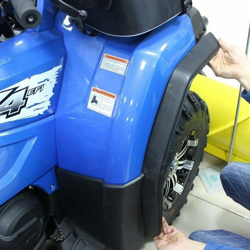 Расширители арок выполнены из гибкого, морозостойкого, устойчивого к ударам пластика. Крепятся на клипсы, сверление по месту, идеально повторяют арку квадроцикла.