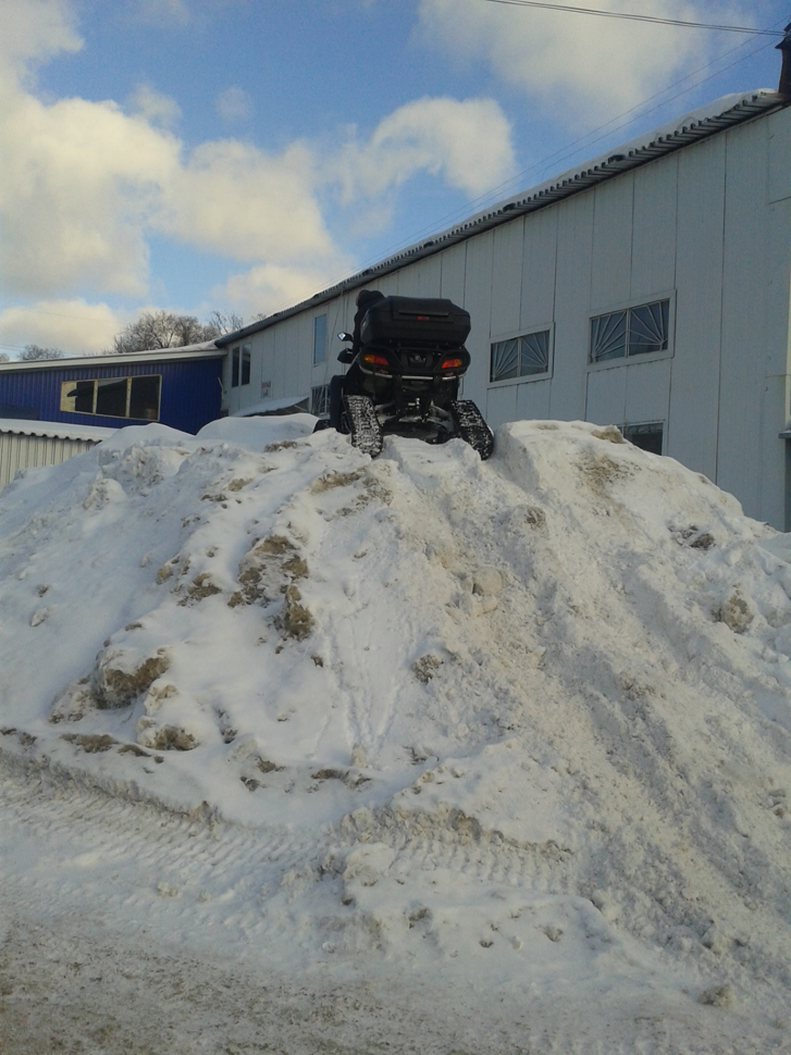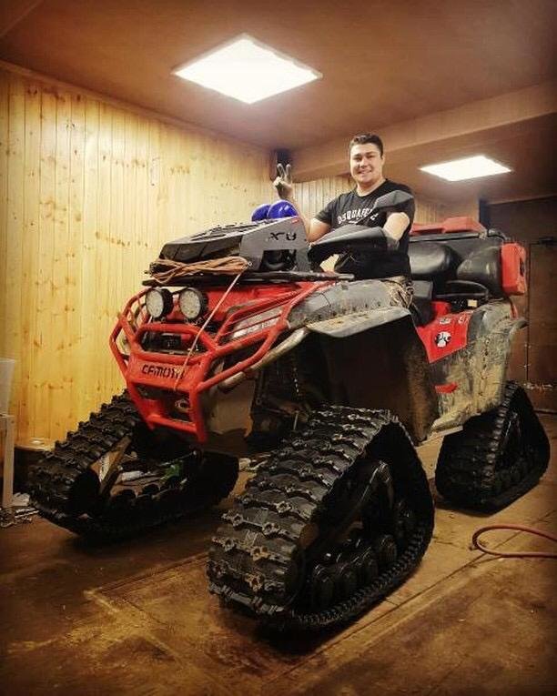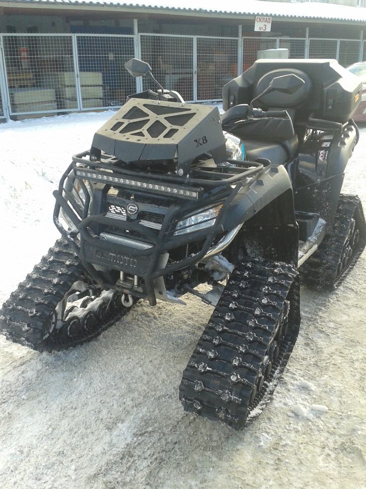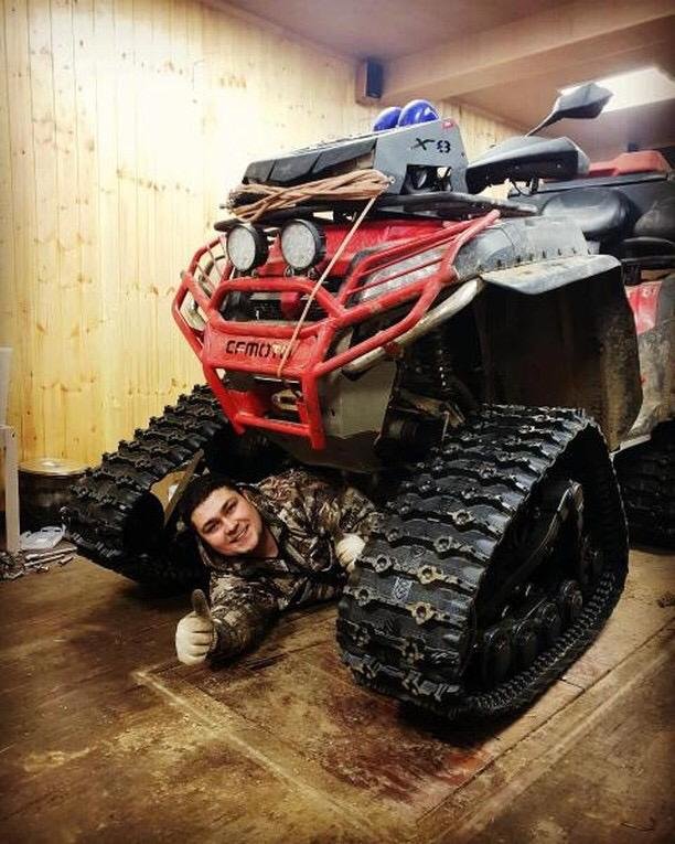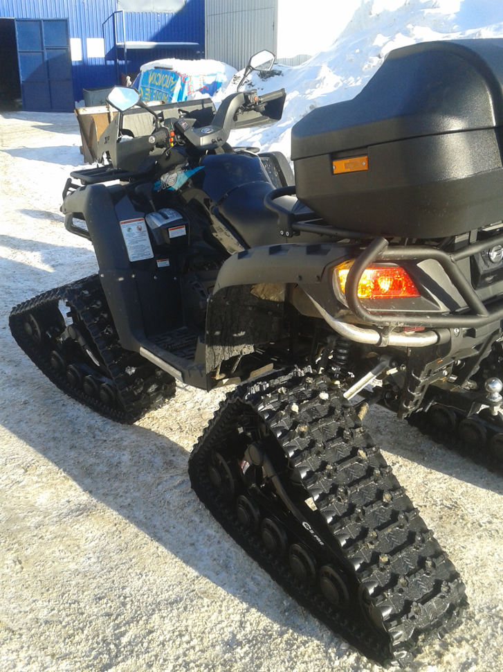 При установке гусениц увеличивается площадь опорной поверхности, что позволяет передвигаться по зыбким грунтам не проваливаясь, а клиренс в 450 мм позволит передвигаться как по глубокому снегу, так и по топким болотистым участкам.