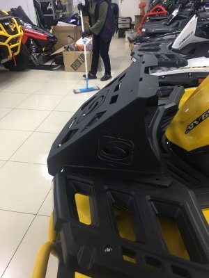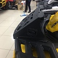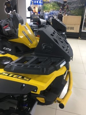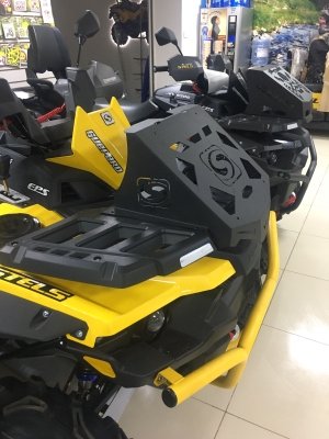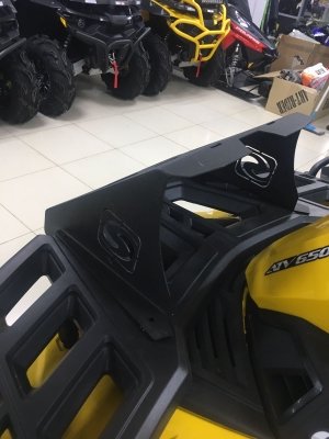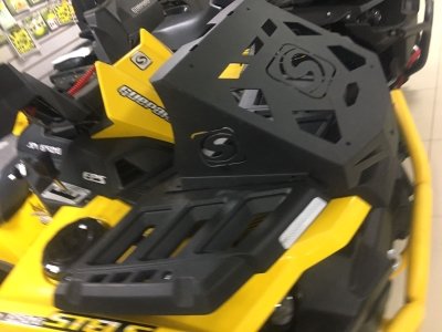 Корпус выноса и боковые кронштейны обеспечивает хорошую жесткость всей конструкции. Клиновидная передняя часть выноса отлично вписывается в концепцию дизайна. К такой мощной конструкции можно крепить канистры с боков и не бояться, что вынос сложится по дороге. Пространство под выносом радиатора мы рекомендуем оставлять открытым, для лучшего охлаждения.