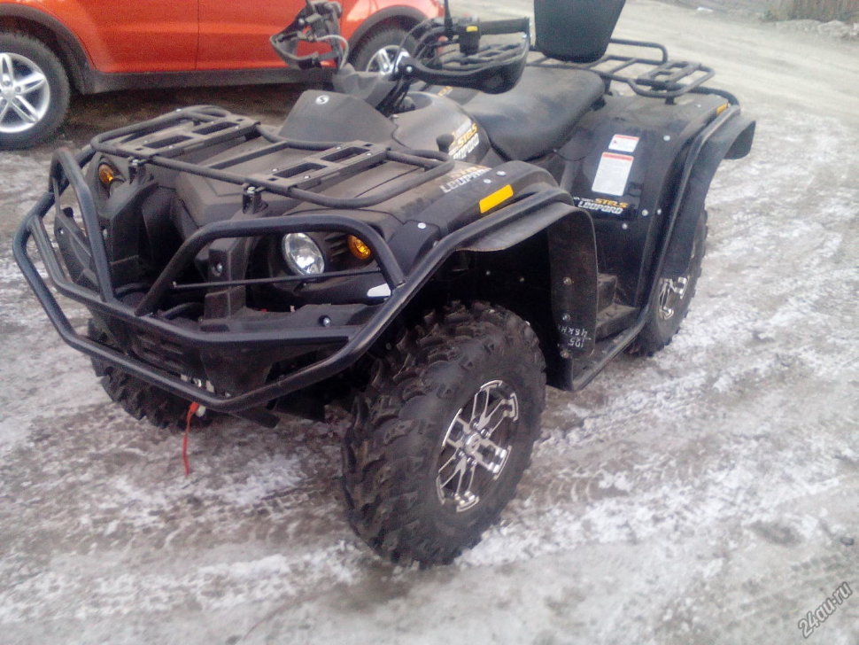 Боковая защита квадроцикла защищает от повреждений пластиковые крылья и пороги вашей техники, изготовлена из прочной стальной трубы, имеет порошковое покрытие и устанавливается в штатные места.