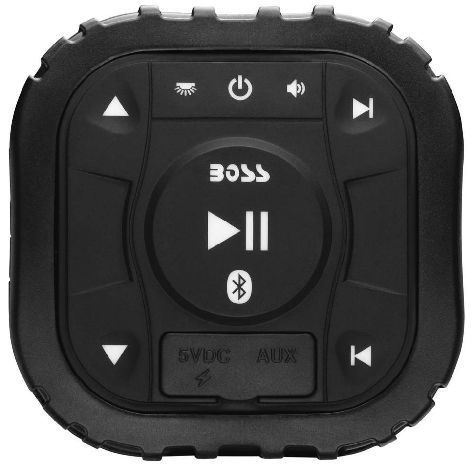 Для удобного взаимодействия с установкой в комплекте поставляется влагостойкий проводной пульт дистанционного управления, который крепится на руль. Пульт представляет собой компактную панель с лаконичным набором клавиш, встроенным USB-портом для зарядки, Aux выходом и Bluetooth.